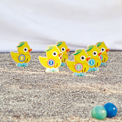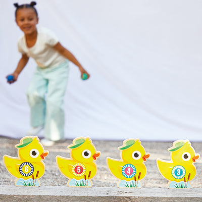 By throwing the balls, they’ll learn to aim and control their power. Furthermore, the colourful ducks add a fun touch and make the game even more engaging. The goal of this outdoor game is to knock down as many pins as possible in as few throws as possible.