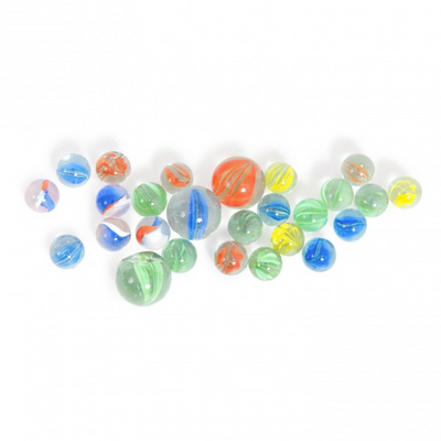 50 glass marbles & 5 shooters, cotton drawstring bag.