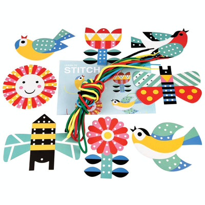 Eight 'stitching cards' and eight lengths of colourful twine.