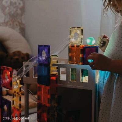 Get ready for endless fun with the CleverClixx Dazzling Lights Ball Run—a 100-piece magnetic tile set designed for open-ended play, creativity, and STEM learning. Watch as little engineers build dazzling, gravity-defying tracks, then send the ball zooming through their creations!