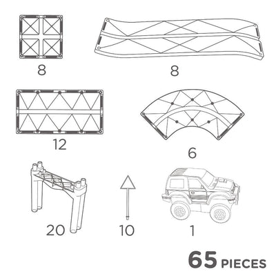 Unlimited racing fun starts here! The CleverClixx Pastel Race Track Pack is a 65-piece set of magnetic tiles for kids, designed for imaginative play, problem-solving, and STEM learning. With strong magnetic connections, little builders can construct dynamic race tracks at different levels, complete with pillars, traffic signs, and a self-riding car for endless excitement.