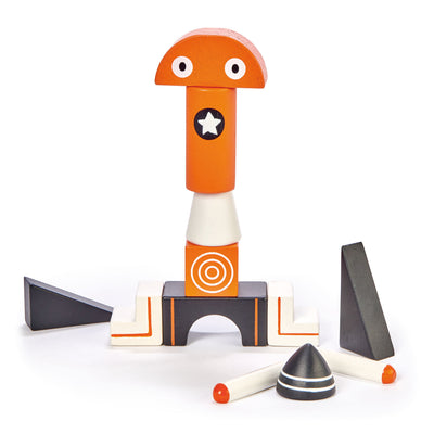 A set of 12 space themed magnetic blocks, made from solid rubber wood and concealed multi directional magnets ensuring there is always positive attraction and no repelling. Included in this set is a stylish and colourful drawstring bag to keep all the blocks safe.