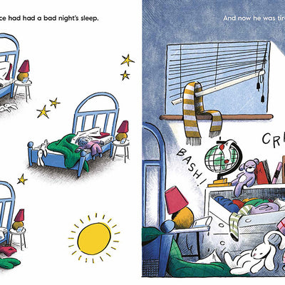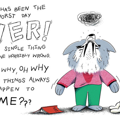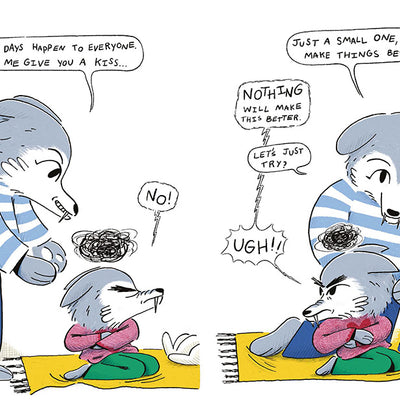 The day gets progressively worse; he’s forgotten his homework, it’s egg salad for lunch, and then mum is late for pick-up. A kiss perhaps?