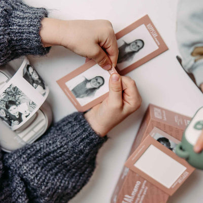 The Hoppstar Memo is the first matching photo game with interchangeable pairs. Take a picture with your Hoppstar Artist camera, print it 2 times, put the print outs in the card sleeves and you have your matching pair.