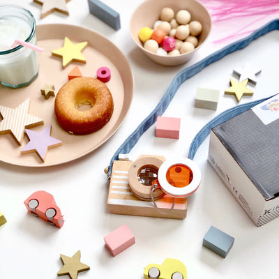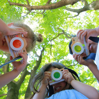 Let the little ones play photographer with the little kiko+ wooden camera. Turn the lens for a magical kaleidoscope surprise.