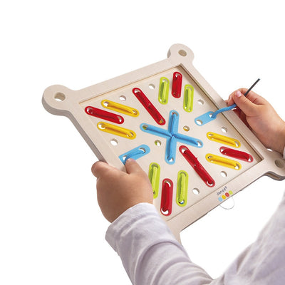 Patience and concentration will be necessary to make the 10 figures of this lacing and color recognition game