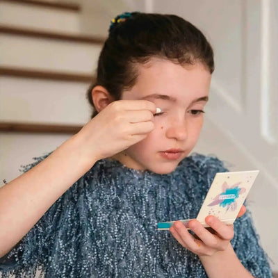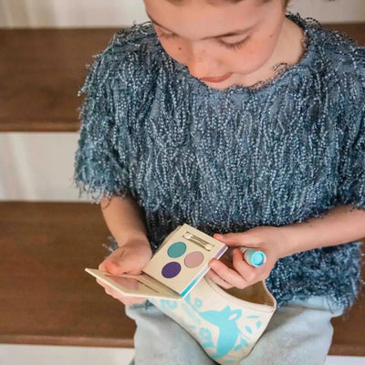 The printed organic cotton pouch includes the lovely 3 colour eyeshadow palette in the winter colourway, and luscious glitter lip gloss. Namaki's premium certified organic cosmetics are 100% natural, hypoallegenic, dermalogically tested and safe for children to experiment with the creative fun of makeup.