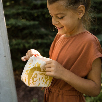 Namaki's sparkling eco friendly Gold Fox organic make up pouch is a gorgeous little set.