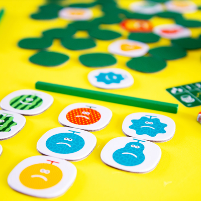 Quickity Pickity is a frantic tile-flipping game that requires players to be quick with their hands and their brains. Everyone starts flipping the tiles at the same time, searching to create a set of fruits of the same color, or shape.