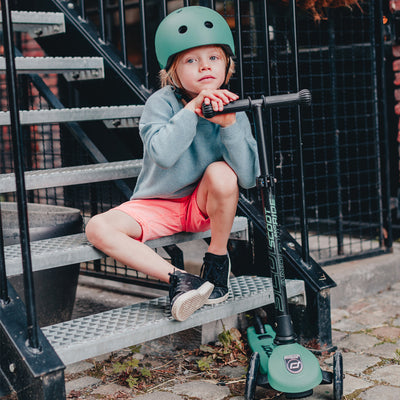 The Scoot & Ride Highwaykick 3 LED in Forest is designed for kids who love to scoot in style and confidently explore. Designed for ages 3 to 6, this clever children's scooter features two front wheels and one rear for extra stability—plus LED light-up wheels for extra wow factor.