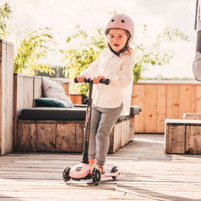 The Scoot & Ride Highwaykick 3 LED in Rose is designed for kids who love to scoot in style and confidently explore. Designed for ages 3 to 6, this clever children's scooter features two front wheels and one rear for extra stability—plus LED light-up wheels for extra wow factor.