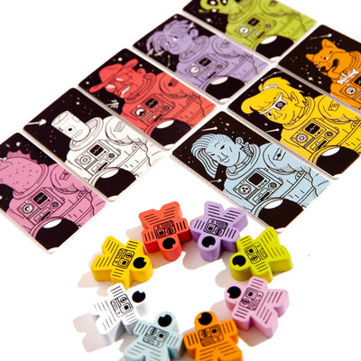 1 spaceship, 8 Astronaut 'meeples', 100 cards, 1 board, 8 player chips, 50 star coins
