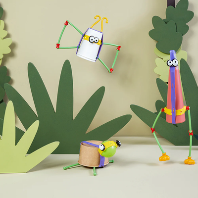Conjure up a captivating crew of curious characters with Toyi's Creatures Building Kit. Pair everyday items like bottle caps and cardboard tubes with this craft kit and your tiny tot can build anything from quirky aliens to brave superheroes! Inside the kids craft box, you'll find 60 construction play pieces for character creation, including eyes, mouths, paws, tails, joints, connectors, and more. This provides the perfect canvas for youngsters to free their imaginations and experiment with different materials, which is fantastic for their creative and sensory development. Great for rainy days, Toyi's eco-friendly craft kits are made from recycled plastics and designed to inspire children to transform everyday items into unique toys! Conforms to current European safety standards. Suitable for 4+ years.