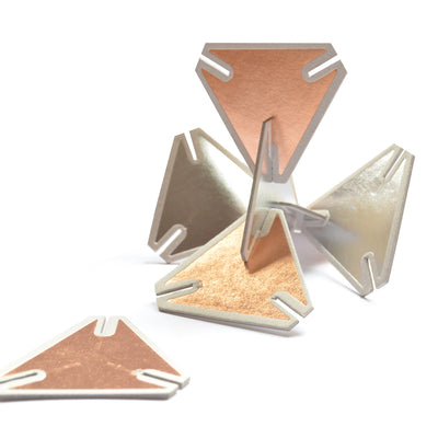 Make beautiful sculpture at home! With its triangular pieces that fit together, Triangulo invites a building and sculpting experience that stimulates the imagination. It is also a game of beauty, which can live as a sculptural form in your home. Triangulo is a fabulous game that invites you to create magnificent geometric constructions.